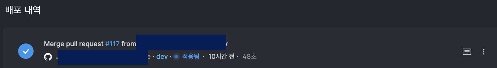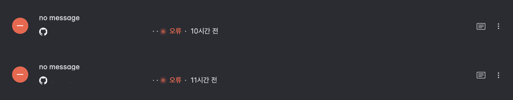 (11시간 전은 워크 플로 파일을 업데이트해서, 10시간 전 내역은 새 pr을 머지해서 발생한 것)
