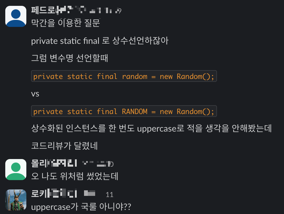 그동안 나도 인스턴스에 대해서는 uppercase로 적을 생각을 못해봤었는데 생각해보니, 인스턴스라도 상수라면 uppercase가 맞네? 라는 생각이 들었다.