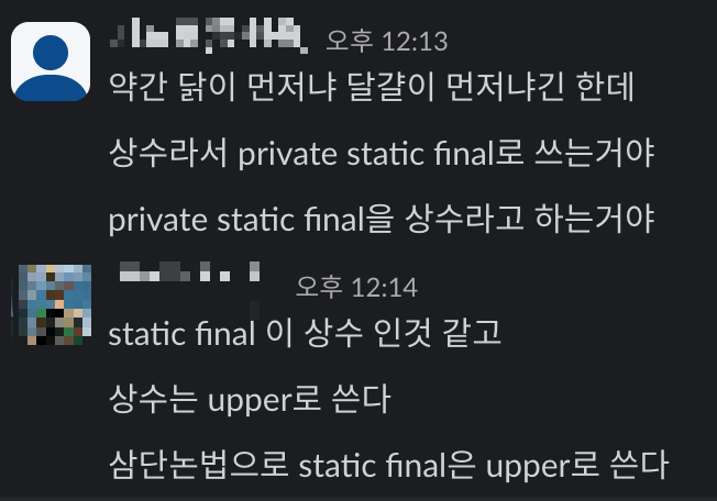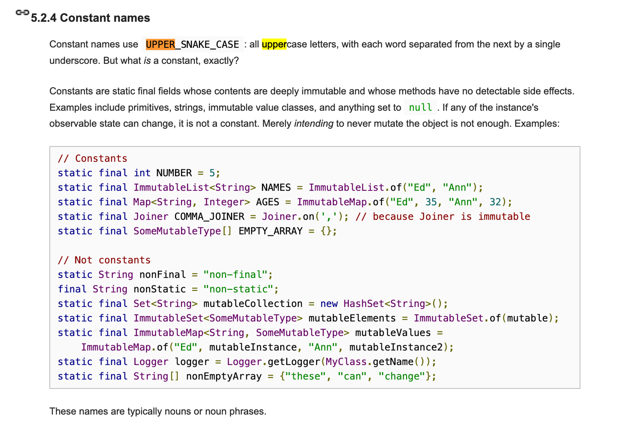 Google Style Guide에 따르면 자바에서의 상수는 UPPER_SNAKE_CASE로 표기한다.